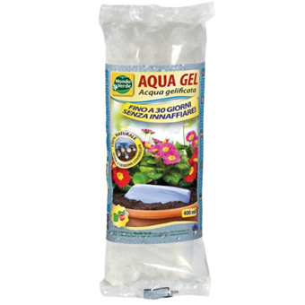AQUA GEL MAXY 400 ML este o apa catalizata si gelificata care poate fi fractionata pentru a se potrivi cu cantitatea necesara. Aqua gel este alcatuita in proportie de 97% din apa care este gelificata printr-un proces de amestecare si catalizare a unui derivat celulozic. Deschizand punga de plastic si introducand produsul gelatinos in ghiveciul de sol vegetal, microorganismele prezente in solul plantei, descompun moleculele de Aqua gel, transformandu-le din nou in apa, care este absorbita de radacinile plantei. Acest proces continua in mod constant si treptat pana la maximum 30 de zile.
