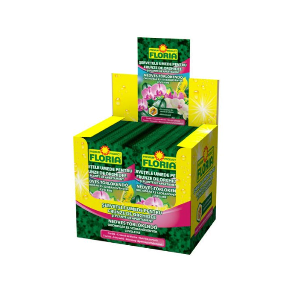SERVETELE UMEDE PT. ORHIDEE SI PLANTE DE CASA -ACS din gama Floria imbunatatesc aspectul decorativ al frunzelor, oferind in acelasi timp beneficii nutritionale. Compozitia servetelor umede este imbogatita cu nutrienti si ceara de albine, avand multiple functionalitati. Acestea curata eficient frunzele, conferindu-le un aspect proaspat si stralucitor. Prin crearea unui strat anti-static, servetelele previn depunerea prafului, mentinand frunzele curate si atragatoare. Ideal pentru ingrijirea frunzelor la orhidee si plante de apartament, aceste servetele actioneaza si ca un ingrasamant partial, oferind nutrienti esentiali (fara a inlocui fertilizarea de baza). Cu continutul de ceara de albine, acestea sporesc luciuzitatea frunzelor si ofera protectie impotriva daunatorilor, contribuind astfel la sanatatea si aspectul vibrant al plantelor.